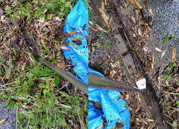 三角部分は普通の溝だけでなく、細くて浅い溝にある草を抜くのにも使えて、サイド部分を使えば草を削り切ることができます。